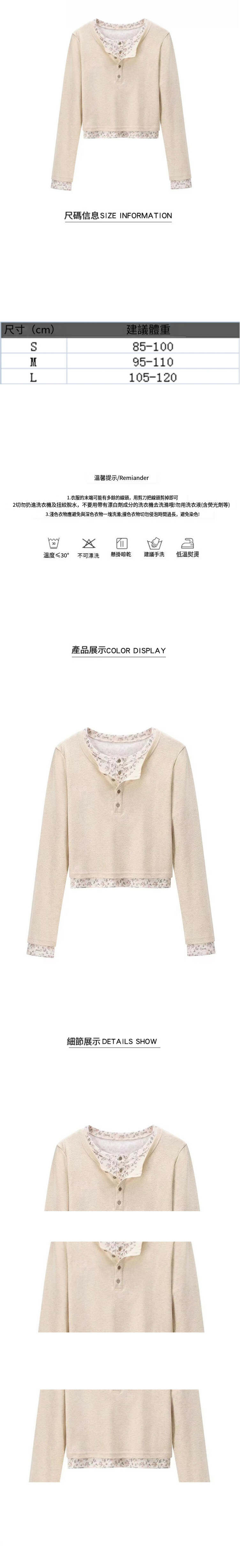 熱推碎花拼接長袖T恤(米杏色)(S/M/L碼,下單後請與客服聯繫發貨尺碼)