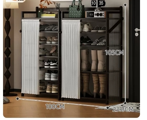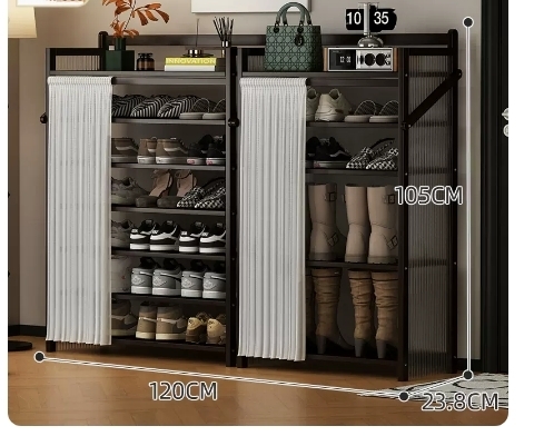 熱推折疊簡約多層鞋架(波浪板-墨黑-靴架組合款6層140*23.8*90CM)