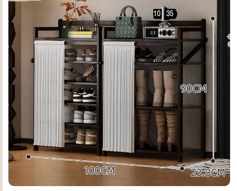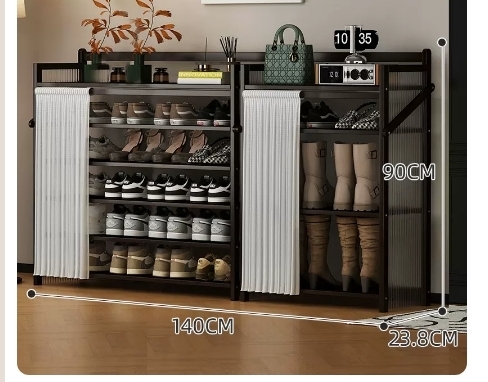 熱推折疊簡約多層鞋架(波浪板-墨黑-靴架組合款7層100*23.8*105CM)