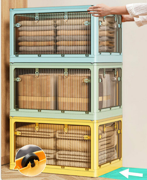 熱推折疊收納箱【茶色-冰川藍】【68*47*37cm】【超大號(雙邊側開門/三秒折疊/帶滑輪)】