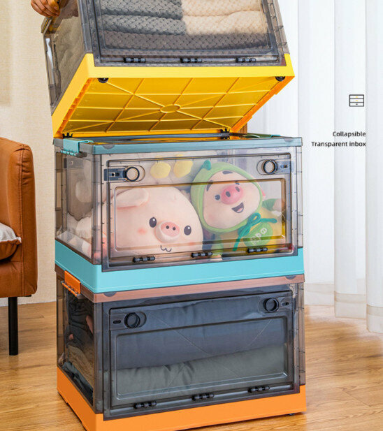 熱推折疊收納箱【茶色-珍珠白】【49*35.5*24cm】【大號(三面開門/可折疊/帶滑輪)】