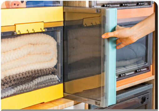 熱推折疊收納箱【透明-芒果黃】【49*35.5*24cm】【大號(三面開門/可折疊/帶滑輪)】