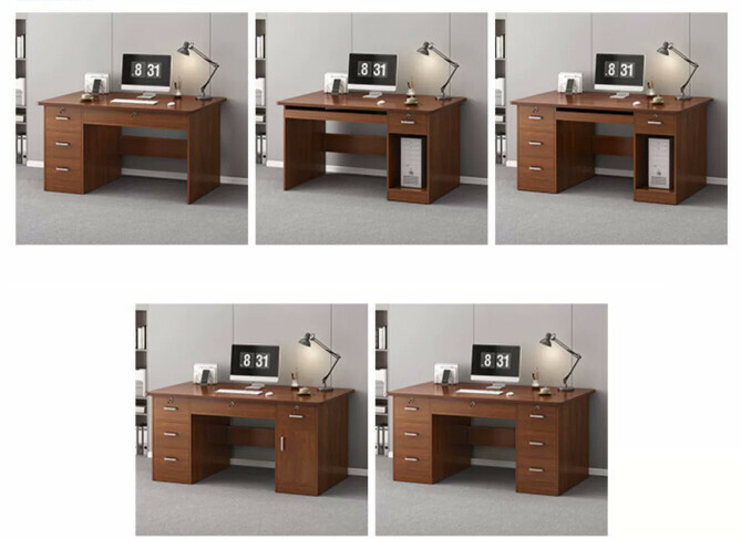 熱推家用電腦桌(深胡桃色+帶抽屜*5+櫃門*1)【尺寸:長120*寬60*高73cm】