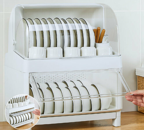 熱推家用廚房碗碟收納盒(豪華版【象牙白雙層碗筷】)