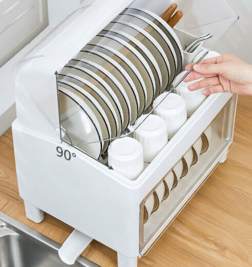 熱推家用廚房碗碟收納盒(標準款【水雲綠雙層碗筷】)