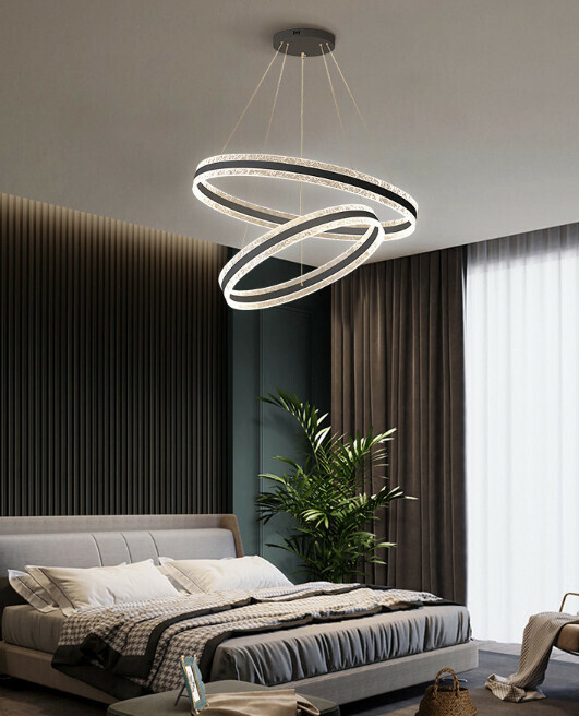 熱推家用客廳餐廳吊燈(拉絲黑100+80cm)【LED三色變光】