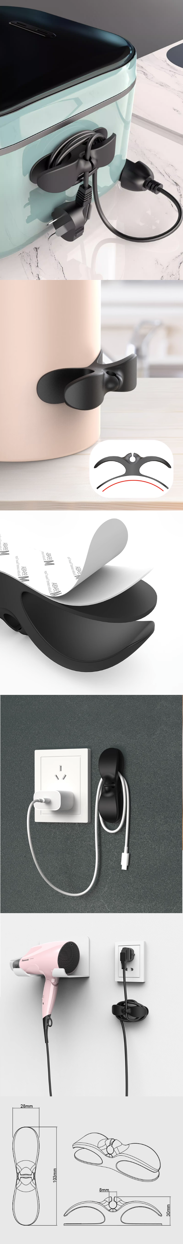熱推家用電器收納繞線器(黑色1個裝【3M背膠 弧形可粘】)