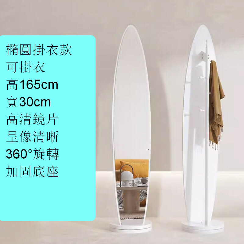 熱推室內落地旋轉穿衣全身鏡【360°旋轉款-橢圓-帶掛衣架-白色】【加固加大底座】