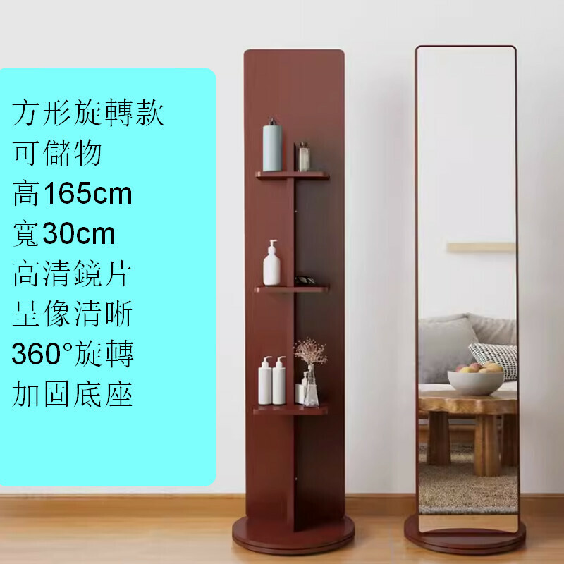 熱推室內落地旋轉穿衣全身鏡【360°旋轉款-方形-帶儲物-棕色】【加固加大底座】