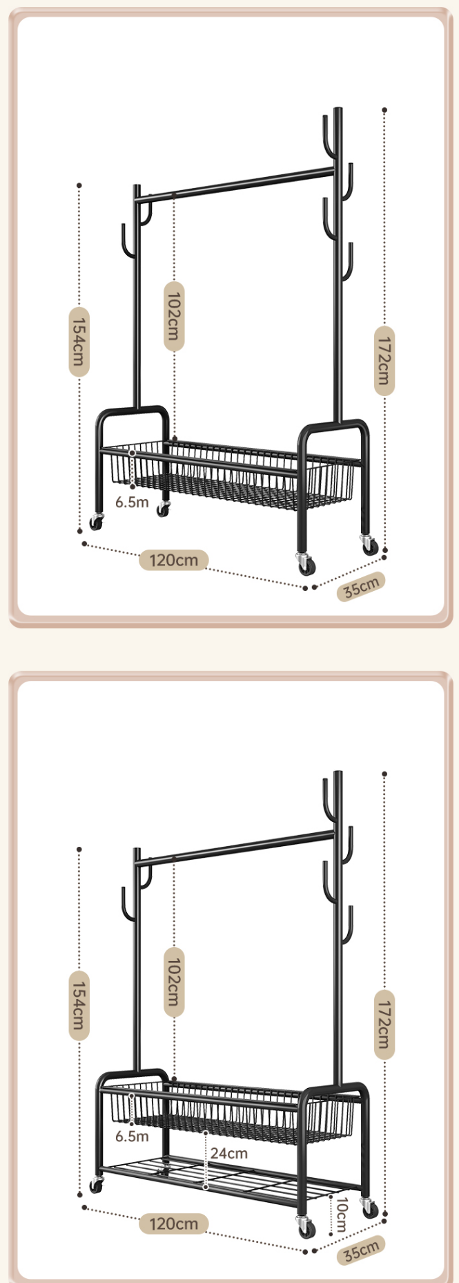 熱推室內帶輪子置物架掛衣架衣帽架(金色單層)(尺寸:100*35*172*154*6.5CM)