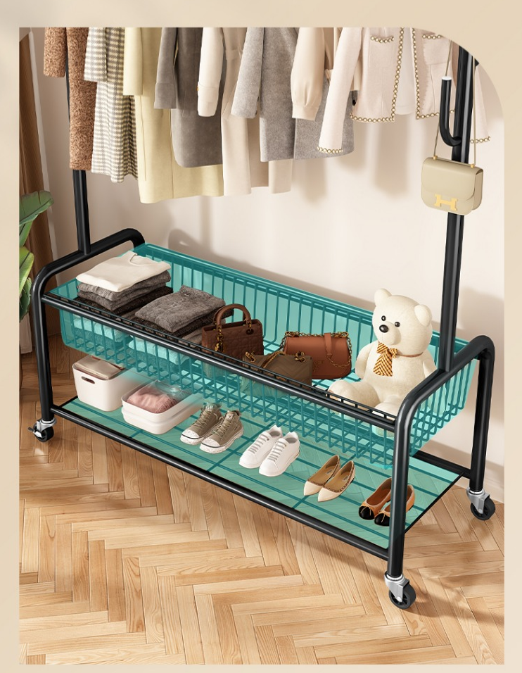 熱推室內帶輪子置物架掛衣架衣帽架(金色單層)(尺寸:60*35*172*154*6.5CM)
