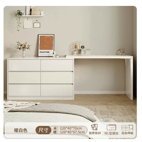 熱推日式組合 梳裝枱 電腦桌 衣櫃 書枱【120cm桌+120cm6抽櫃】暖白色