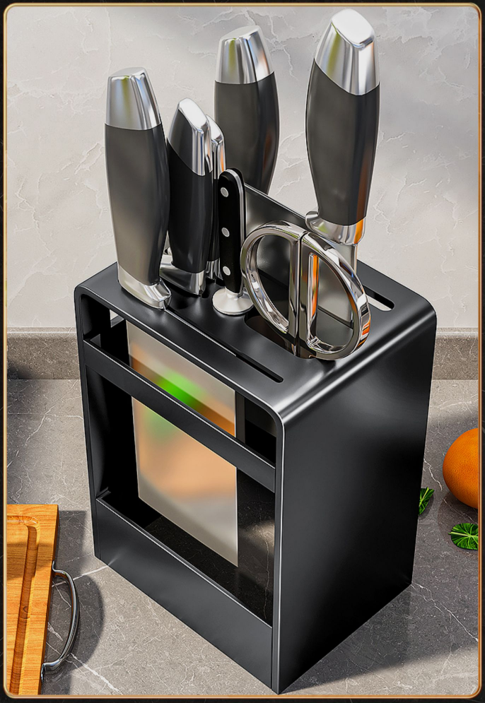 熱推廚房檯面一體式碳鋼刀具置物架(黑色正面斜口刀架)(尺寸:17*12.8*22.5*18CM)