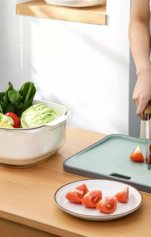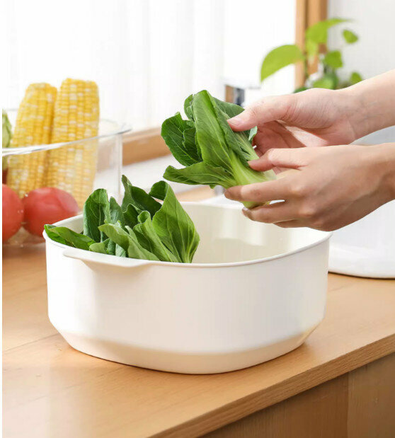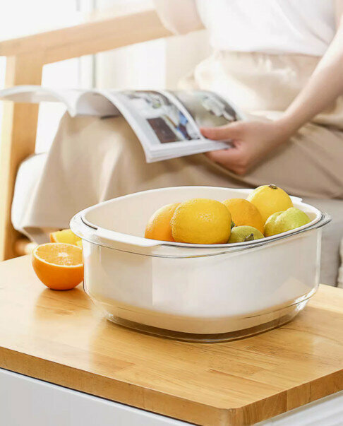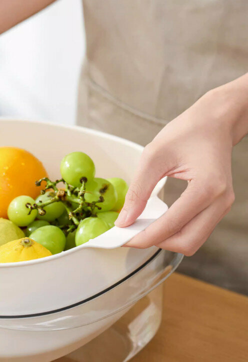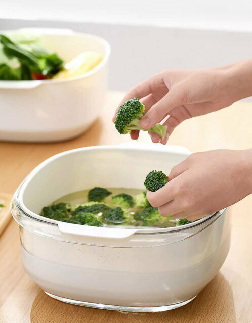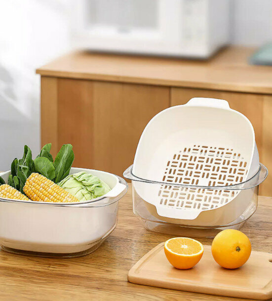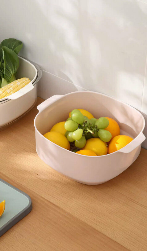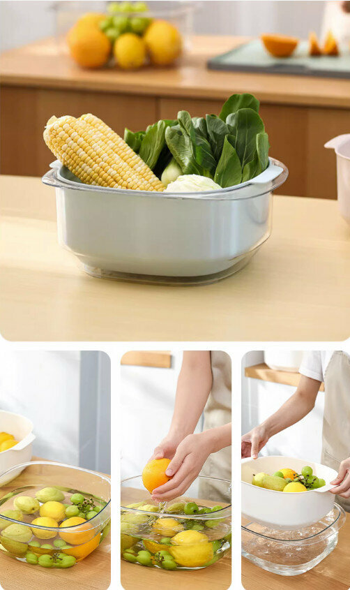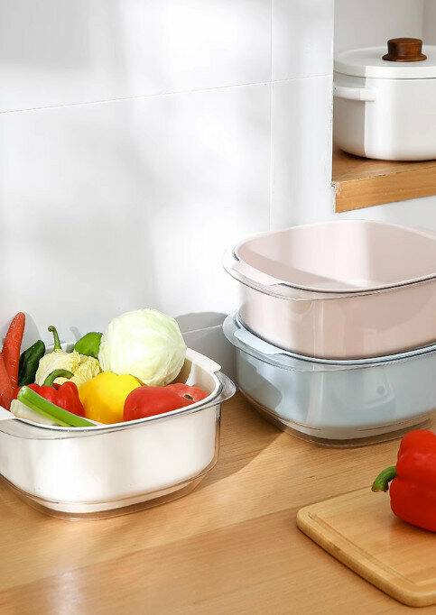 熱推廚房雙層洗菜盆瀝水籃套裝(淺藍色)