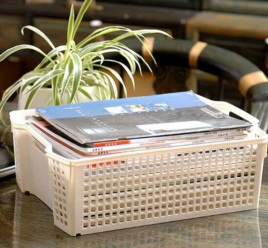 熱推廚房塑料雜物收納盒(A4淺型-米色)