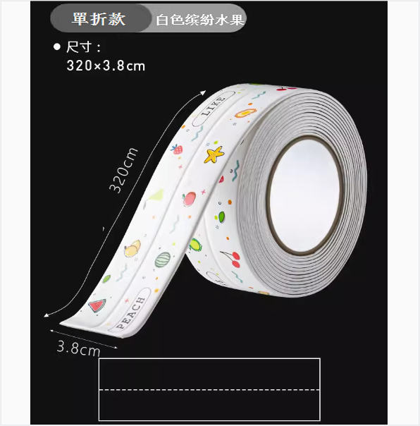 熱推廚房竈台防水封邊水槽膠(單折款-白底缤紛水果【3.8cm*3.2m】)