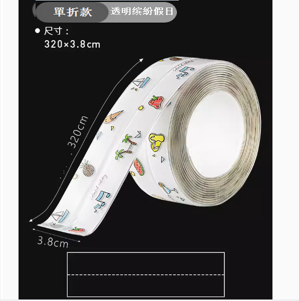 熱推廚房竈台防水封邊水槽膠(單折款-透明缤紛假日【3.8cm*3.2m】)