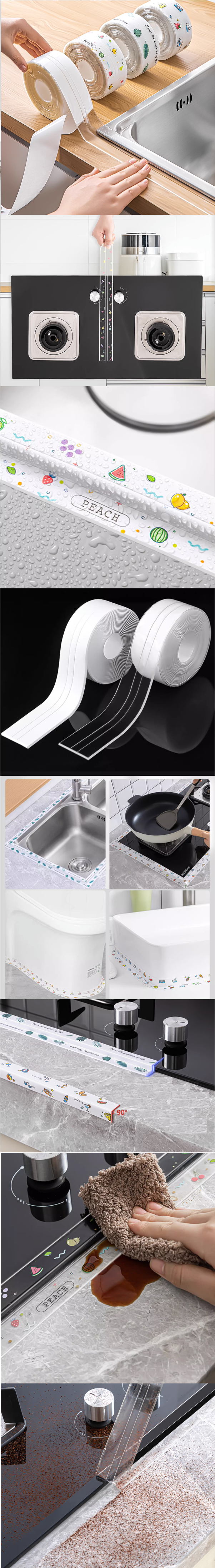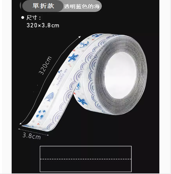 熱推廚房竈台防水封邊水槽膠(單折款-透明藍色的海【3.8cm*3.2m】)