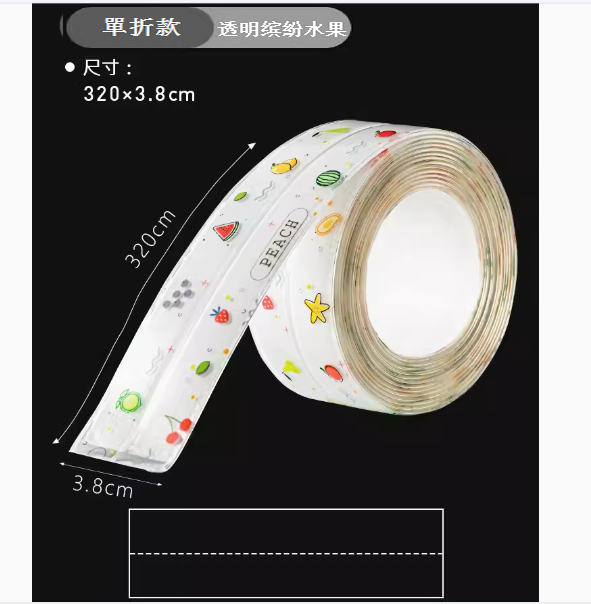 熱推廚房竈台防水封邊水槽膠(單折款-透明缤紛水果【3.8cm*3.2m】)