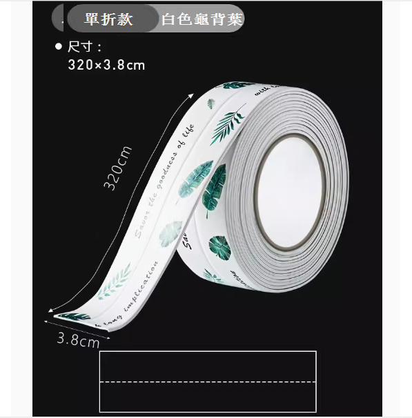 熱推廚房竈台防水封邊水槽膠(單折款-白底綠植【3.8cm*3.2m】)