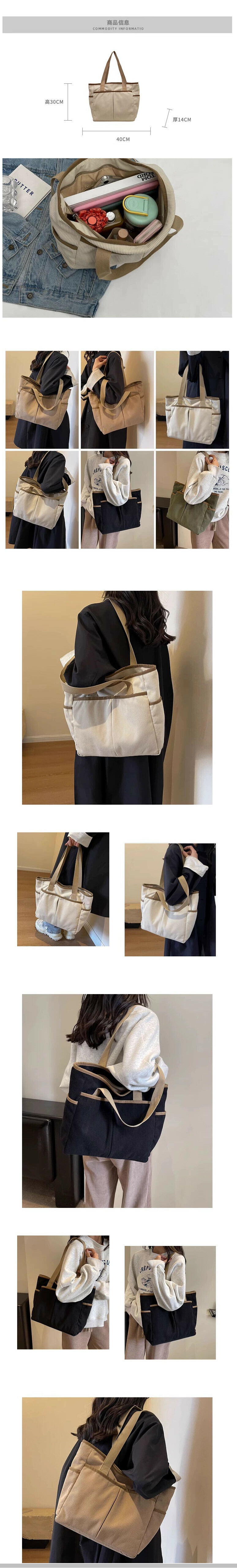 熱推大容量休閒單肩包 燈芯絨手提包(米色)