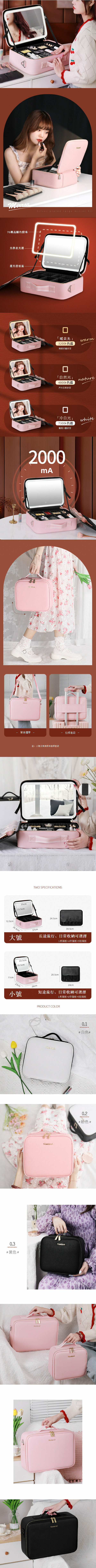 熱推內置電池帶LED燈大鏡面化妝收納包【小號 黑色】