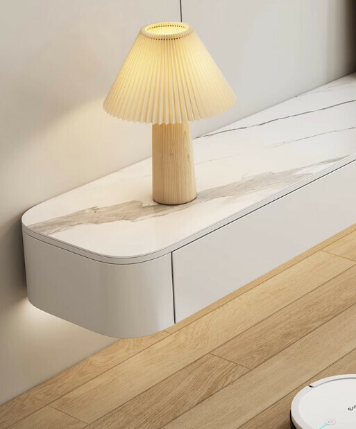 熱推客廳岩板懸空電視櫃(奶油白)【1.6米】