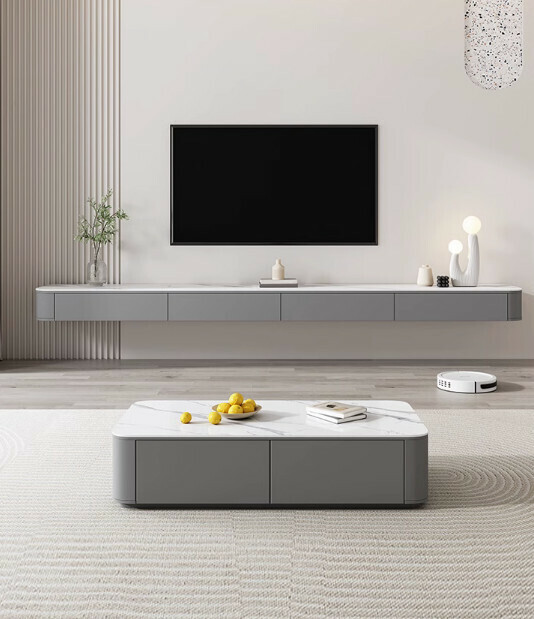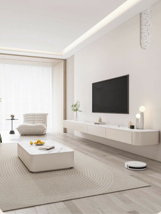 熱推客廳岩板懸空電視櫃(奶油白)【2.0米】