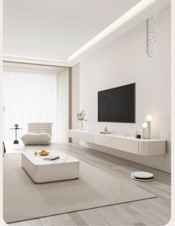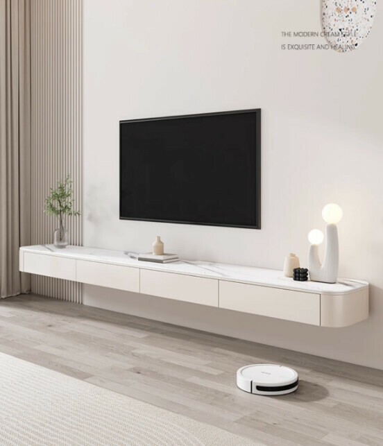 熱推客廳岩板懸空電視櫃(奶油黃)【2.2米】