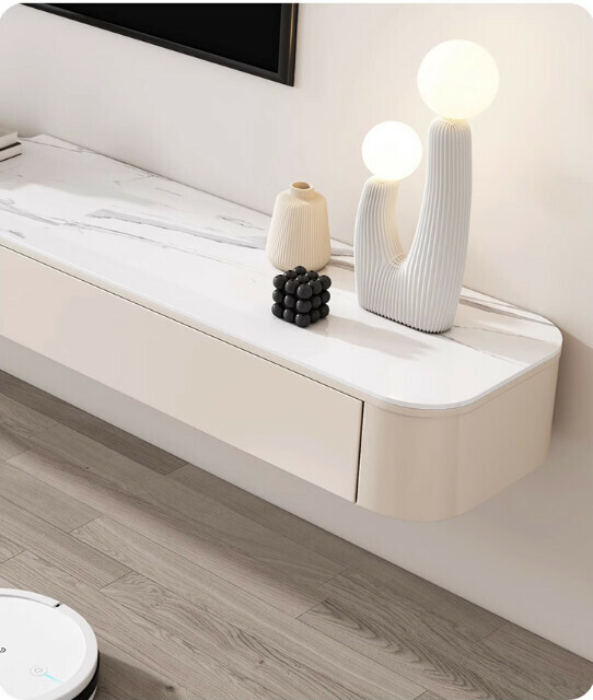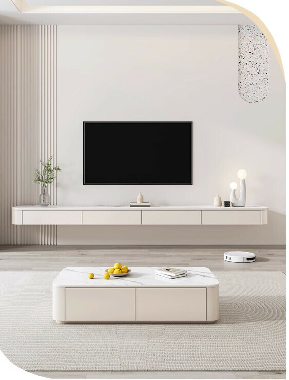 熱推客廳岩板懸空電視櫃(奶油黃)【2.8米】