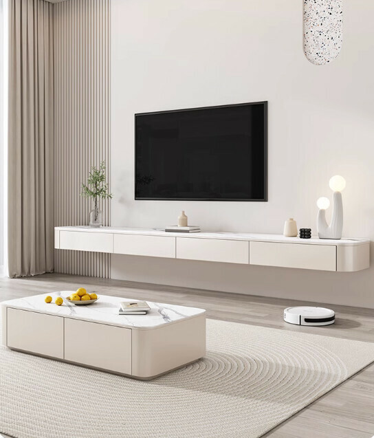 熱推客廳岩板懸空電視櫃(奶油黃)【3.6米】