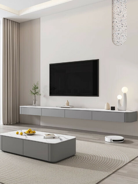 熱推客廳岩板懸空電視櫃(卡其灰)【2.4米】