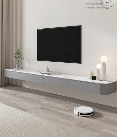 熱推客廳岩板懸空電視櫃(卡其灰)【2.6米】