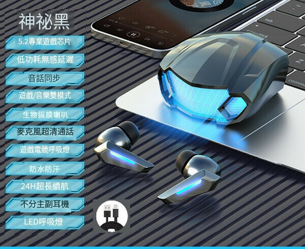 熱推M5電競遊戲藍牙耳機-神秘黑