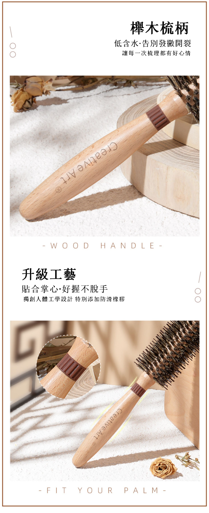熱推【做卷更有弧度】鬃毛捲髮梳-斜紋梳齒