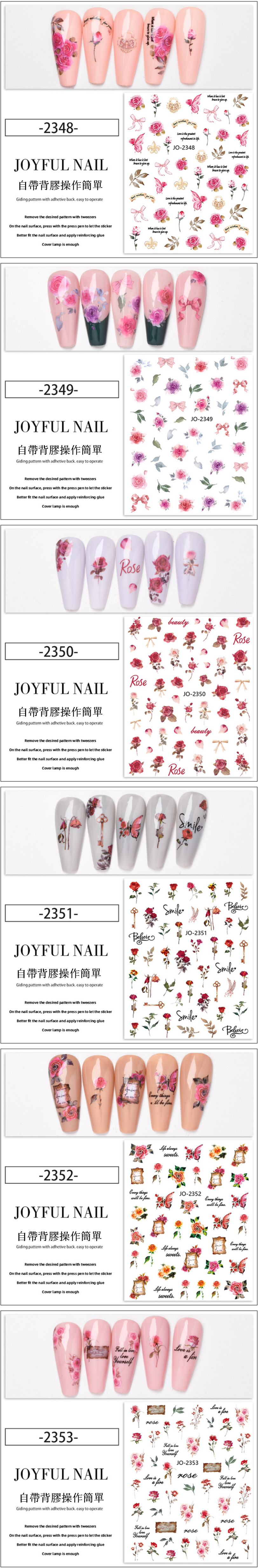 熱推美甲 復古玫瑰貼紙(套裝/6張-2348-2353)