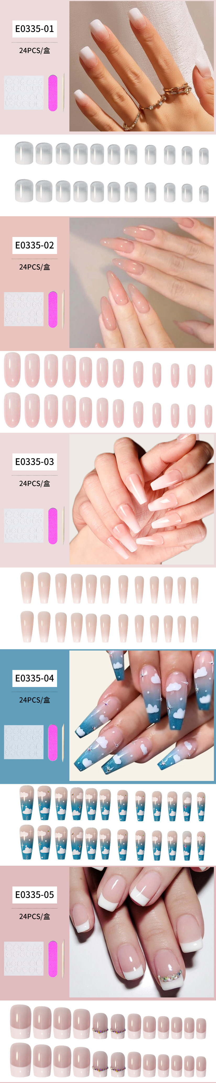 熱推美甲 穿戴甲片梯形漸變白E0335-03#(24片盒裝)