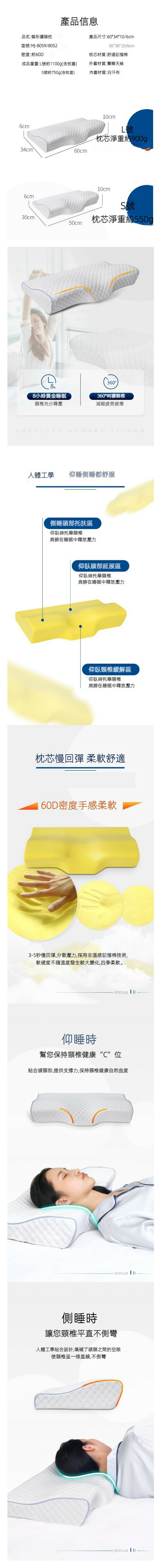 熱推記憶棉護頸枕蝶形枕頭(蘭精天絲黃棉)(8052款50*30*10/6cm)