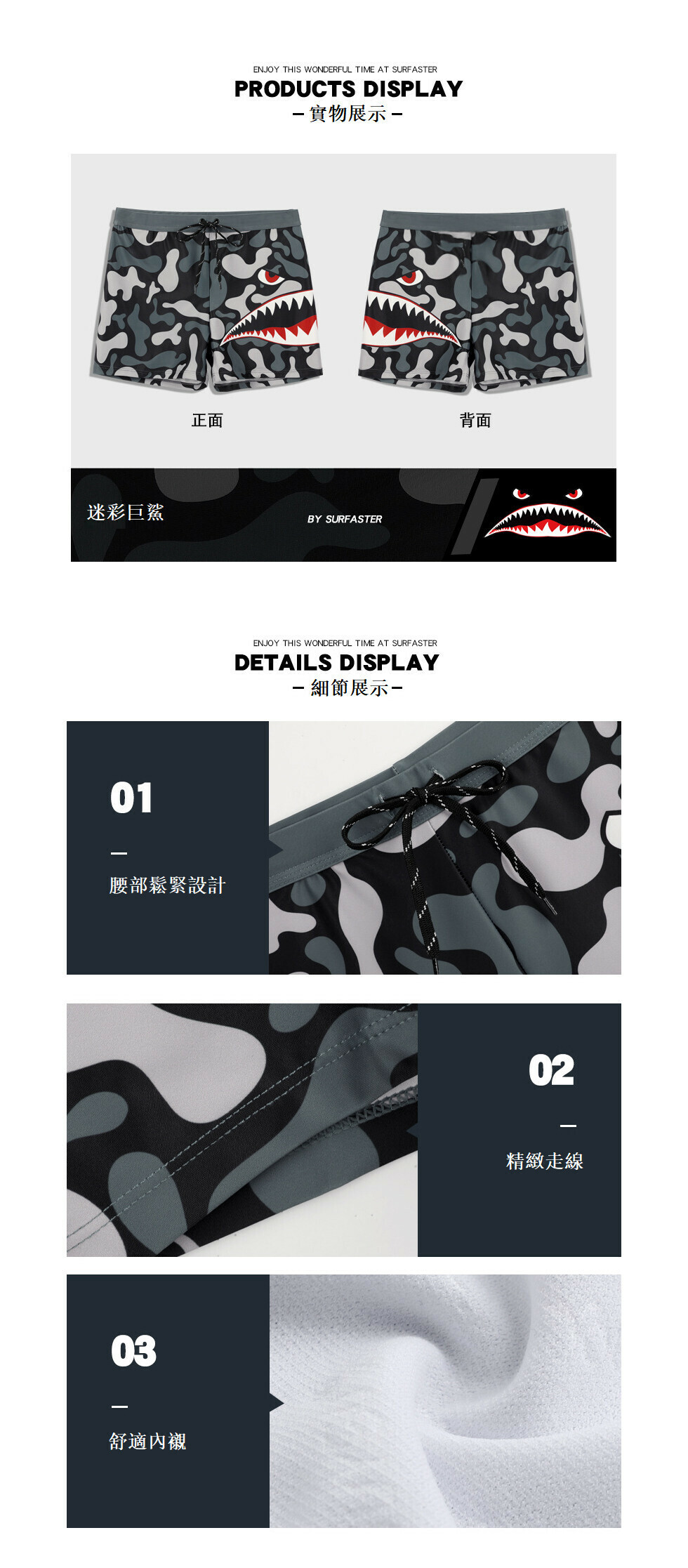 熱推男士平角速幹游泳褲(迷彩鯊魚-灰【內襯款】)(L-5XL)(下單後跟客服聯系發貨的尺寸)