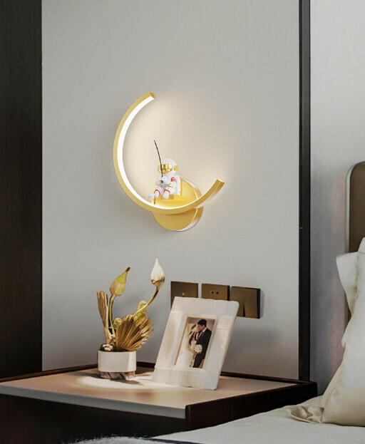 熱推現代簡約太空人壁燈(半圓25cm-黑色)【LED三色變光】