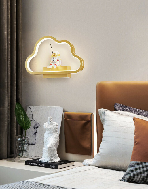 熱推現代簡約太空人壁燈(星星29cm-黑色)【LED三色變光】
