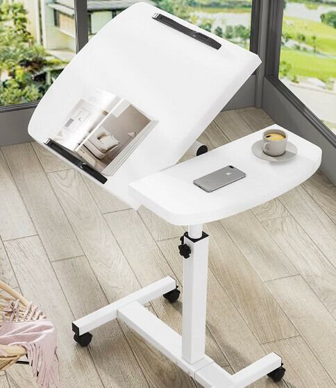 熱推可移動電腦桌(【雙板+雙卡槽】白拉絲)【尺寸:(40+20)*40cm】