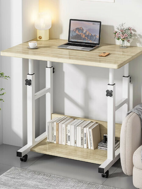 熱推可移動電腦桌(【雙層書架款】原野橡木色)【尺寸:80*40cm】