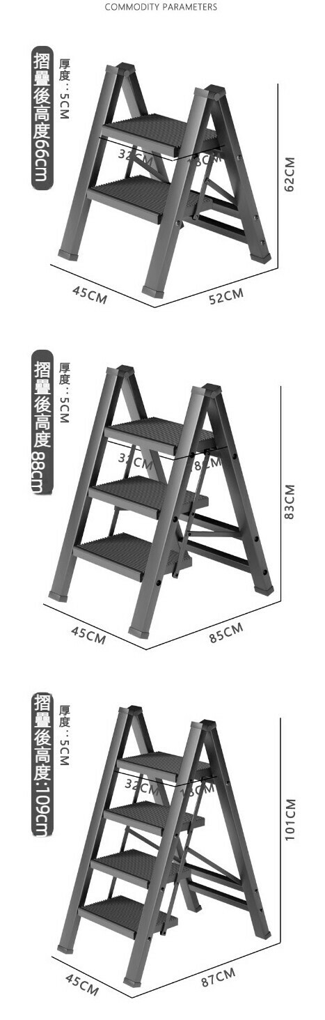 熱推多功能鋁合金折疊梯(三步梯-典雅黑)