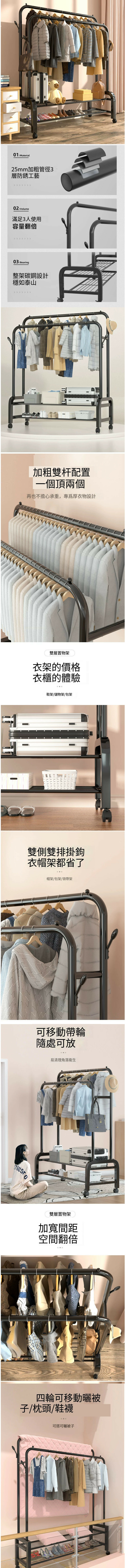 熱推多功能衣帽架 晾衣架 簡約掛衣櫃 曬衣架【大容量】黑-150cm·四掛鉤+雙層網+輪 【大小:(大)】