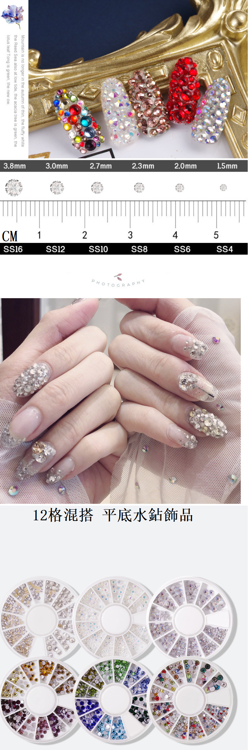 熱推美甲飾品 裸AB彩色水鉆31號(12格混裝)