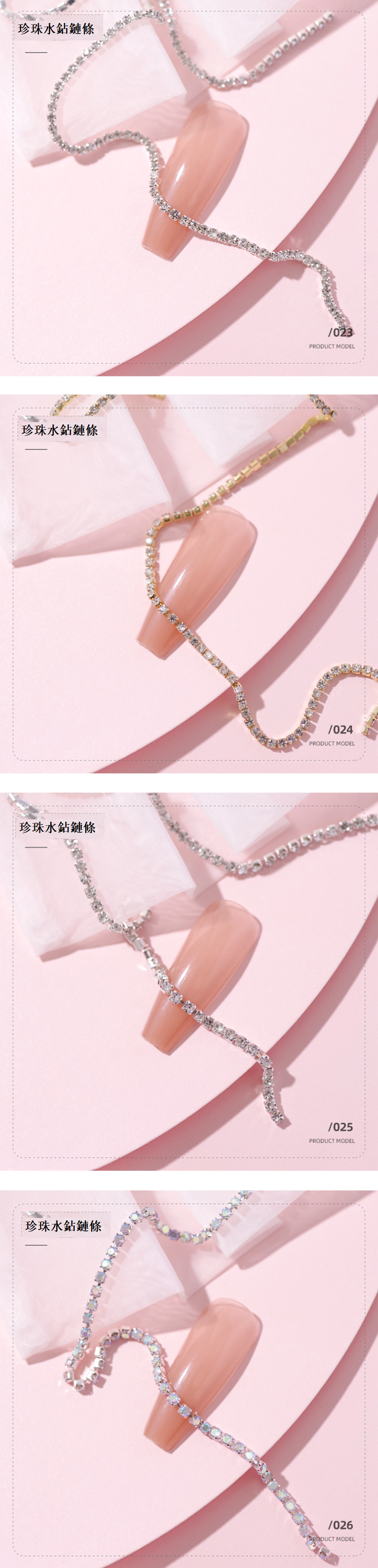 熱推美甲飾品 美甲鏈銀底白鉆 直徑2.0mm 長22cm(25号)