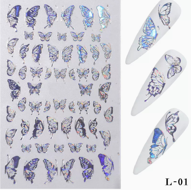 熱推美甲仿真薄款蝴蝶貼紙 鐳射銀蝴蝶L01