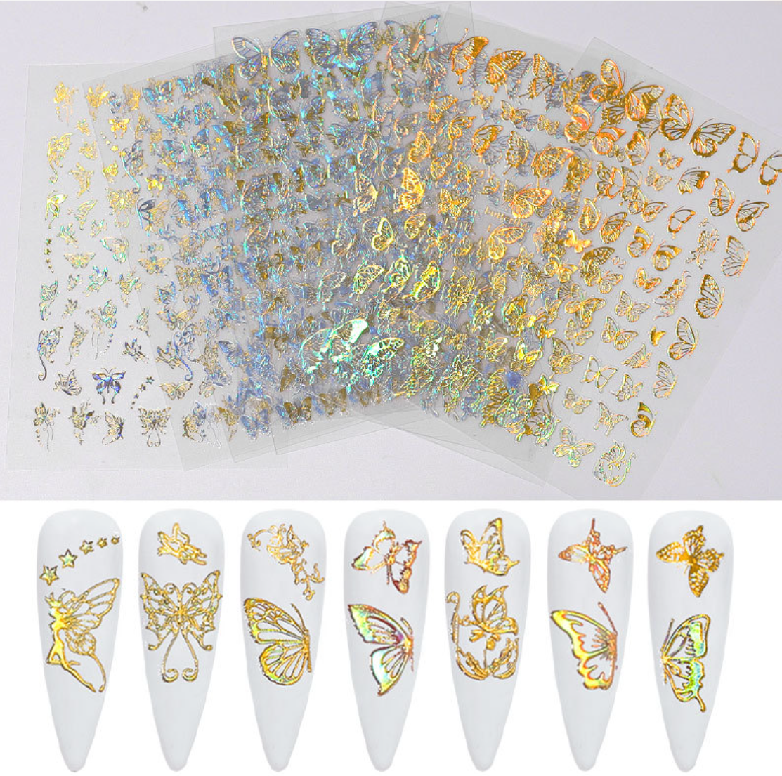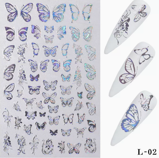 熱推美甲仿真薄款蝴蝶貼紙 鐳射銀蝴蝶L02