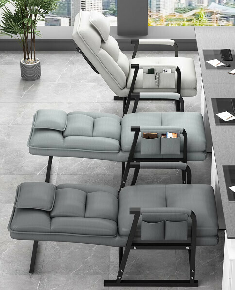 熱推辦公座靠背椅(旗艦款米白科技布+腳踏)【鋼製腳】